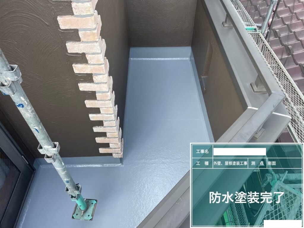 ベランダ防水トップコート、タイル撥水処理まで一棟まるごと整えました。